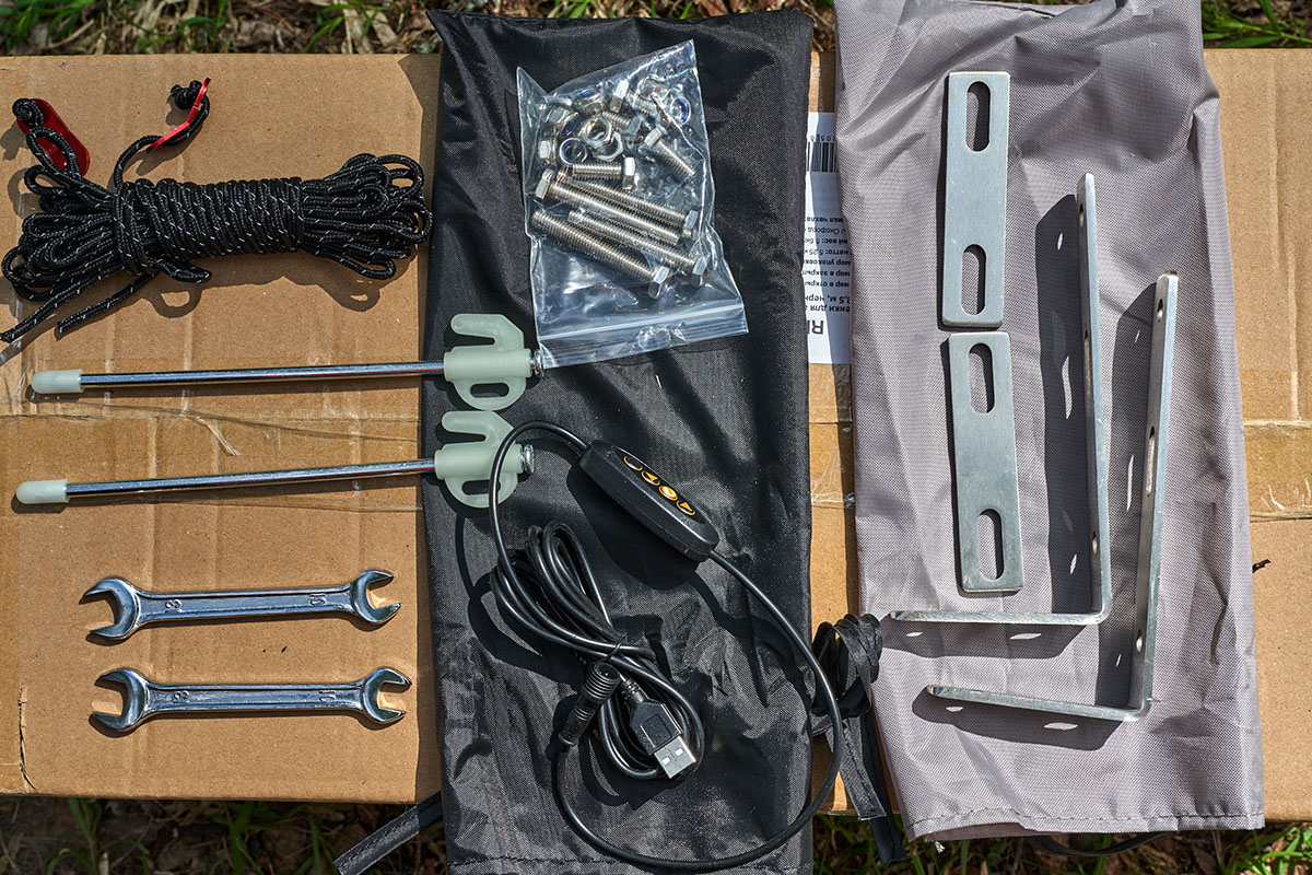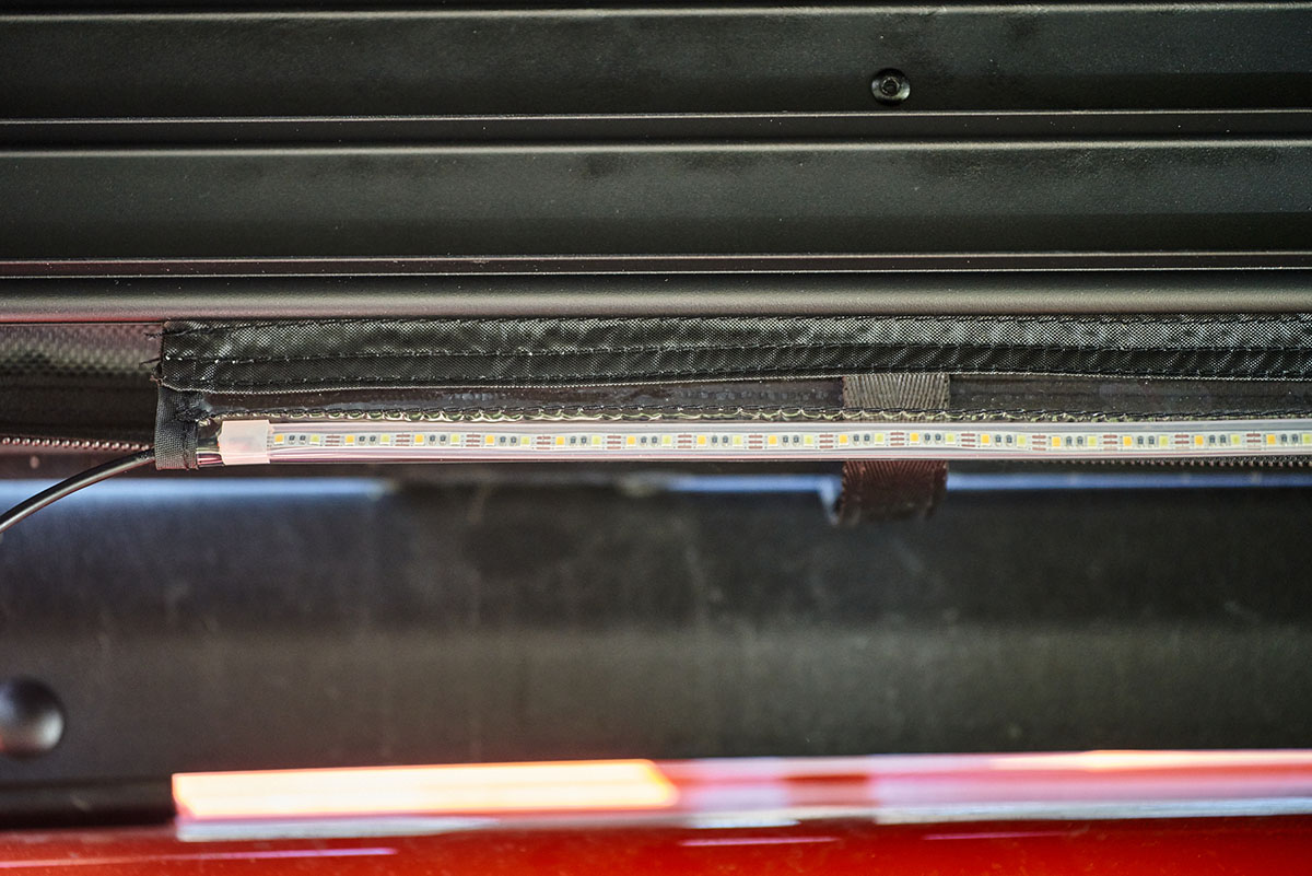 А еще маркиза оборудована подсветкой в виде светодиодной ленты, которая подключается к любому пауэрбанку (но он в комплект не входит).