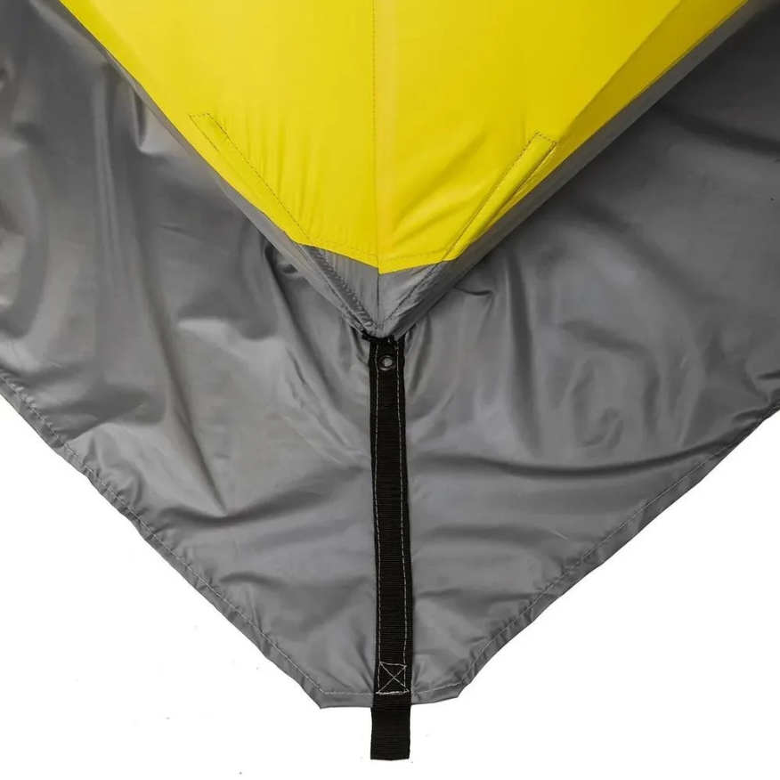 Широкая ветрозащитная юбка, с люверсами для лучшего притягивания палатки ко льду.